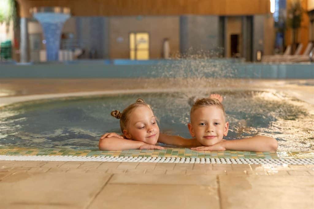 - Vaikai 0–4 metų apgyvendinami nemokamai, vaikams priklauso pusryčiai, hidrorelaksacija ir neriboti apsilankymai baseinų ir pirčių komplekse.