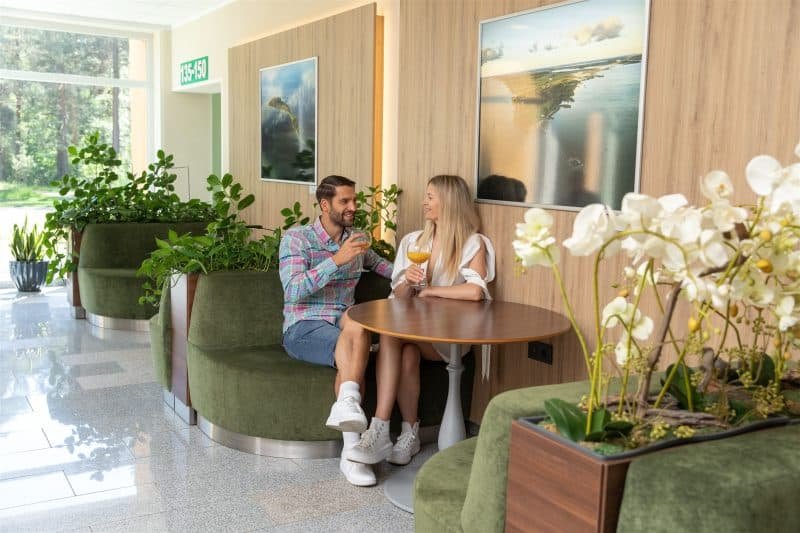 Frühstücken Sie nicht gerne? Sind Sie mit Ihren Kindern angekommen, deren Wünsche sich so oft ändern wie das litauische Wetter? Oder essen Sie kleinere Portionen, aber öfter als andere? Leben Sie in Ihrem eigenen Tempo – die Kunden des Kurzentrums können den Speisesaal besuchen, wann und so oft sie wollen. Neben dem Frühstücks-, Mittags- und Abendbuffet können sich hungrige Kunden an den Brunch- und Abendimbiss-Bars bedienen, wo sie heiße natürliche Rinder- oder Hühnerbrühe, Quark mit verschiedenen Beilagen, verschiedene Aufstriche aus Fisch und sonnengetrockneten Tomaten sowie Pasteten, Eier, einen Berg von Gemüse, Obst und verschiedenes Gebäck finden.