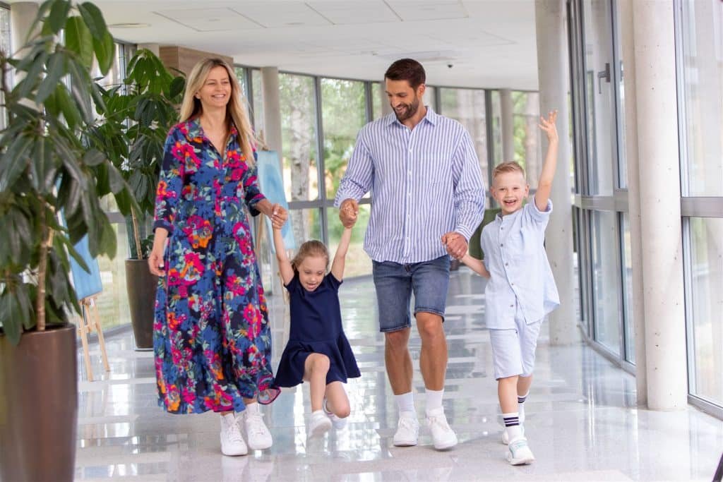 Kokybiškas laikas su vaikais jums atsitraukus nuo buities ir sutelkus dėmesį į buvimą kartu, stiprinant visų šeimos narių fizinę, emocinę ir psichologinę sveikatą, mėgaujantis gydomosiomis procedūromis, su meile ruoštu maistu – pusryčiais, pietumis, vakarienėmis ir užkandžių barais, buvimu baseinų ir pirčių komplekse tiek, kiek geidžia širdis. Ir žvelgiant į tas šelmiškas ugneles vaikų akyse, jiems dūkstant žaidimų kambaryje.