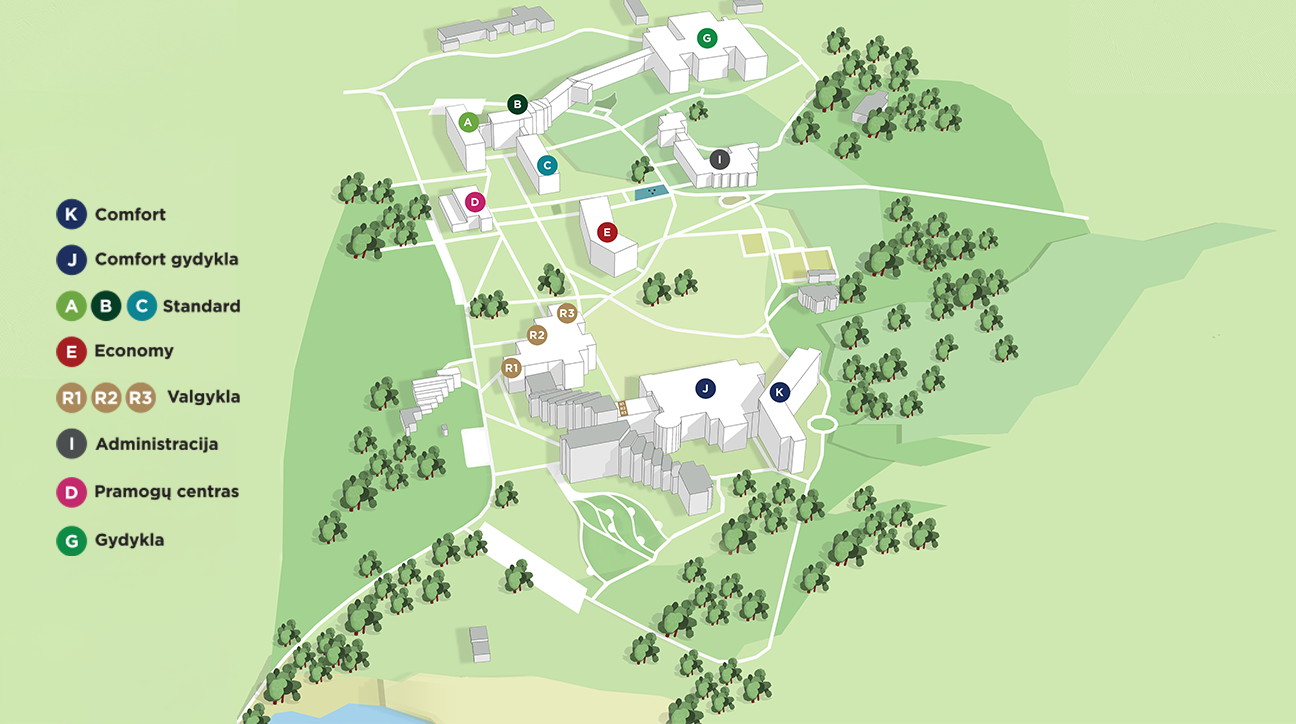 Teritorijos žemėlapis su pažymėtais korpusais
